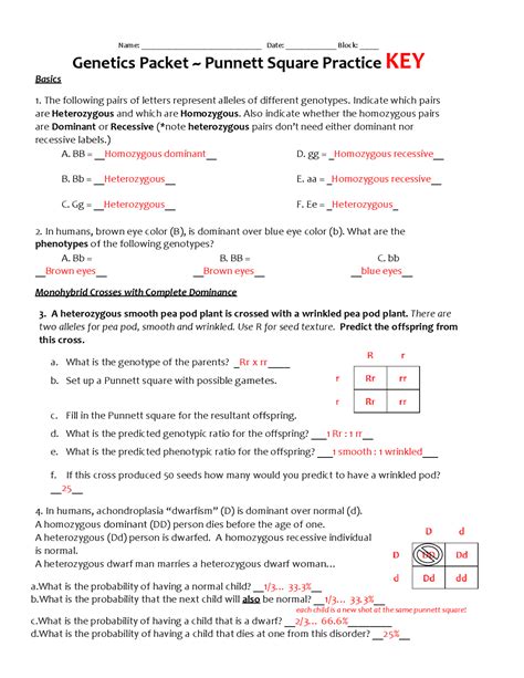 Genetics Punnett Squares Practice Packet Answer Key